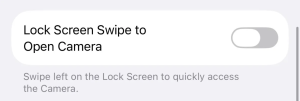 Settings → Camera → Lock Screen Swipe to Open Camera