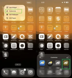 در حالت Light Tint آیکونها ظاهری روشن و مینیمال پیدا میکنند و در Dark Tint جلوهای تیرهتر و مدرنتر دارند. این تغییر کوچک، اما تأثیرگذار باعث میشود صفحهی هوم آیفون با هر قاب یا تمی هماهنگ شود.