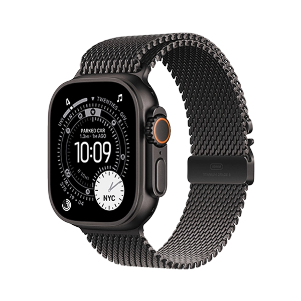 بدنهی مقاوم تیتانیومی، نمایشگر همیشه روشن با روشنایی بالا، و بندهای حرفهای مانند Alpine Loop و Ocean Band، ظاهر این ساعت را شیک، کاربردی و فوقالعاده بادوام کردهاند. صفحهنمایش Retina آن با نرخ رفرش 1Hz و قابلیت Night Mode در هر شرایطی خوانا باقی میماند.